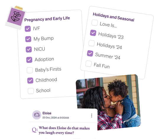 Parenting is already busy — journal in a way that works for you. Capture your family’s experiences, emotions, and memories by responding to curated text prompts sent on your schedule or free journaling when the mood strikes. Choose how often you receive questions, how you document milestones, and how you share your family’s story.