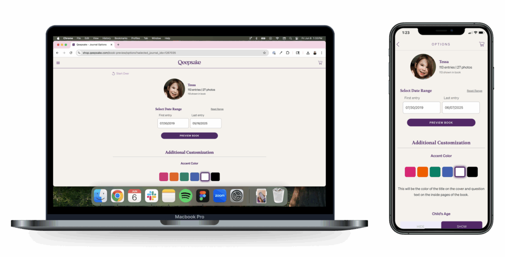 For those of us with multiple littles, we also recommend ordering each of your little’s Qeepsake Books separately. Whether it’s their baby book or high school graduation, you’ll thank yourself for highlighting each child individually and giving them their own spotlight!
